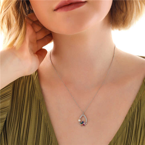 Silver-Colored Stoned Flower Women's Necklace The most special and elegant way to express your feelings to your loved ones is with stylish, colorful and fragrant flowers that you can send her. Flowers, which are among the gifts to be given on special occasions, have been designed with a different interpretation this time ... This stylish silver-colored stoned flower necklace is a perfect option for a birthday gift, Valentine's Day gift or as a gift for mothers on special occasions. Silver-colored stoned flower women's necklace is made of 925 sterling silver. This necklace is rhodium plated. Rhodium-plated silver women's necklace models preserve their shine for a long time. The stones on it are zircon. As with all our silver women's necklace models, the silver-colored stoned flower women's necklace model is also handmade. Due to silver and precious stones, there may be ± 10% deviation in the average product weight. Width: 1.40 cm Length: 2.40 cm Avg. Weight: 2.90 gr. Chain Length: 45 cm
