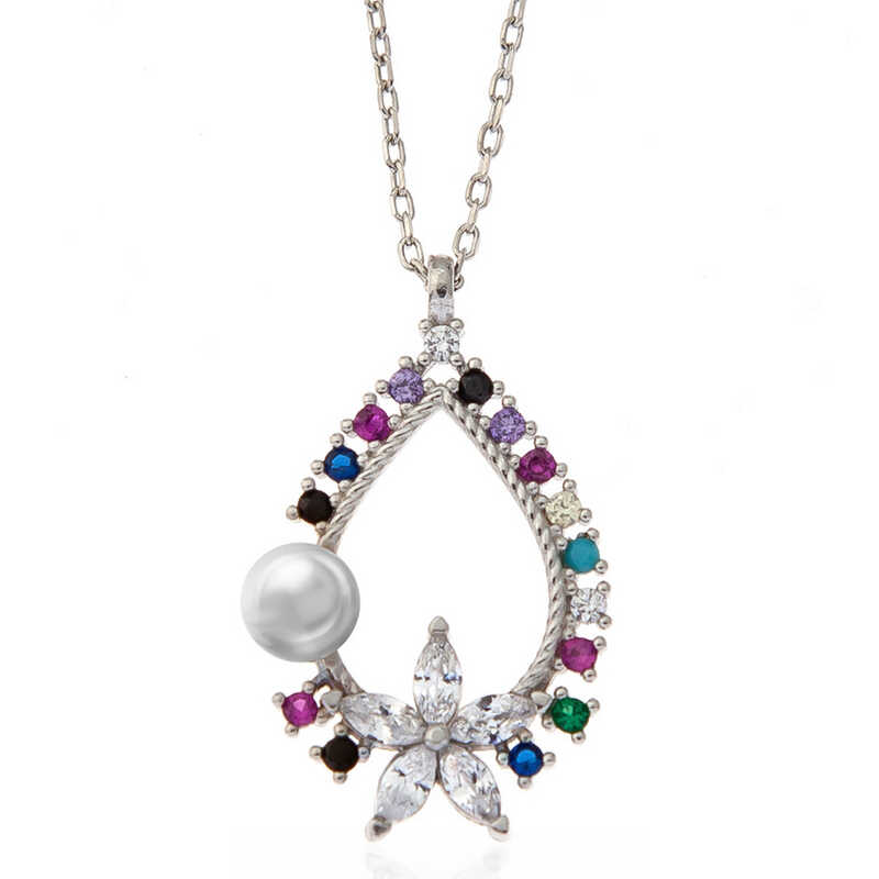 Silver-Colored Stoned Flower Women's Necklace The most special and elegant way to express your feelings to your loved ones is with stylish, colorful and fragrant flowers that you can send her. Flowers, which are among the gifts to be given on special occasions, have been designed with a different interpretation this time ... This stylish silver-colored stoned flower necklace is a perfect option for a birthday gift, Valentine's Day gift or as a gift for mothers on special occasions. Silver-colored stoned flower women's necklace is made of 925 sterling silver. This necklace is rhodium plated. Rhodium-plated silver women's necklace models preserve their shine for a long time. The stones on it are zircon. As with all our silver women's necklace models, the silver-colored stoned flower women's necklace model is also handmade. Due to silver and precious stones, there may be ± 10% deviation in the average product weight. Width: 1.40 cm Length: 2.40 cm Avg. Weight: 2.90 gr. Chain Length: 45 cm