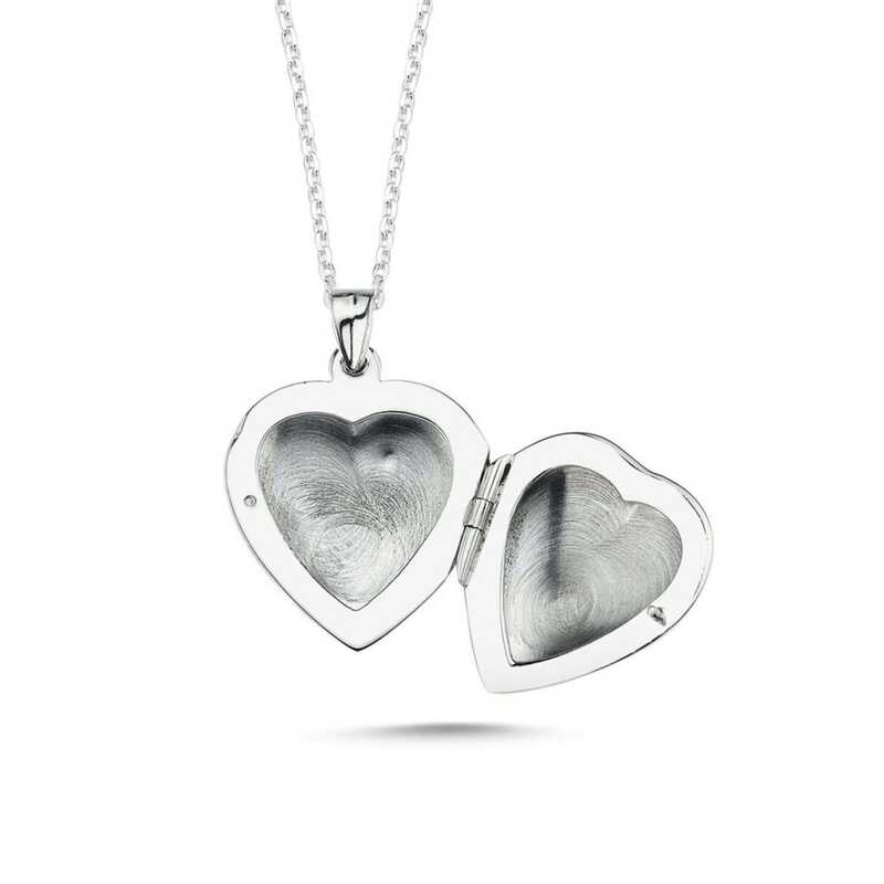 Silver Lidded Heart Locket Women's Necklace The lidded heart locket necklace, which will always remind you of your love and your first moment of happiness and will accompany your most romantic moments, is specially designed for lovers. The lidded heart necklace model, which can be placed with anything you want, will be one of the meaningful gifts you can give to your loved ones. You can carry your loved ones with you at all times by putting pictures of your loved ones or a memory you want to keep inside the silver necklace. This specially designed necklace is made of 925 sterling silver. Rhodium plated silver women's necklace models preserve their shine for a long time and delays oxidation. The average chain length is 50 cm. Due to silver and precious stones, there may be a ± 10% deviation in product weight. Width: 2.30 cm Length: 2.50 cm Average Weight: 8.20 gr. Chain Length: 50 cm