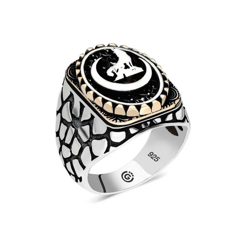 Silver Crescent Bozkurt Oval Men's Ring The crescent bozkurt oval men's ring model on silver is a stylish accessory that you can use at any time of the day. You can gift this ring to yourself or your loved ones on your birthday, Father's Day or special occasions. The crescent bozkurt men's ring model is made of 925 sterling silver. Oxide coating is applied on the silver. Oxide coating preserves its shine for a long time. As with all men's rings, the silver crescent bozkurt men's ring model is handmade. Due to silver and precious stones, there may be ± 10% deviation from the average product weight.Width: 1.50 cmLength: 2.00 cmAverage Weight: 16 gr.