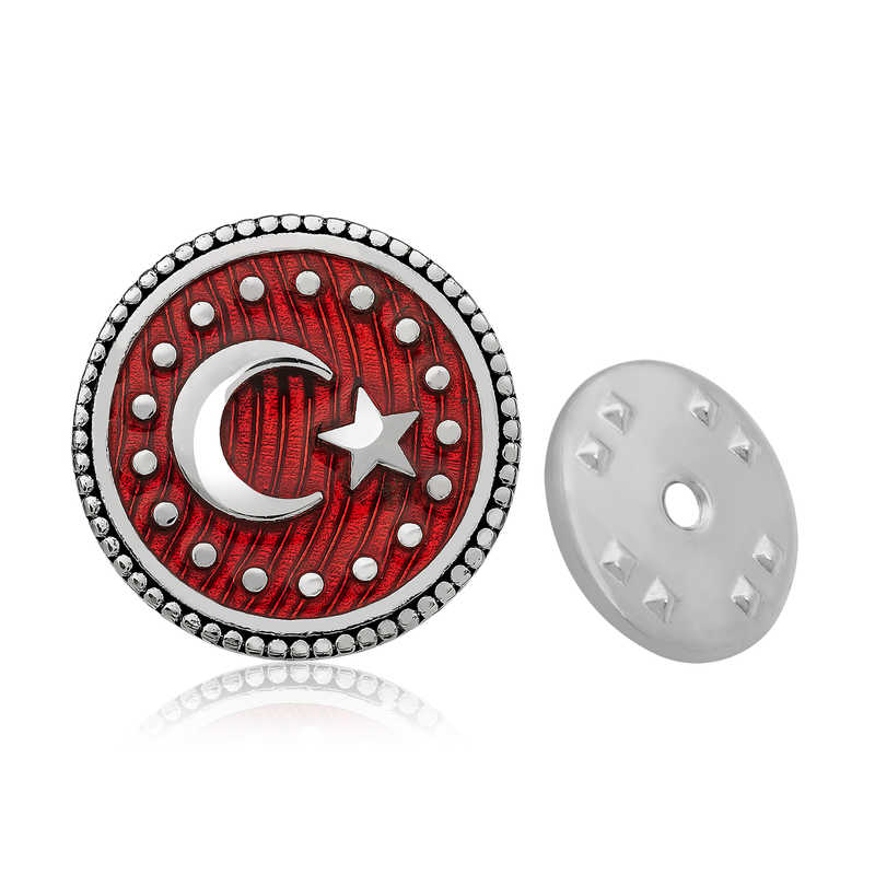 Silver Crescent Star Badge We know that the Turkish flag takes its inspiration from the crescent and star reflected in a lake of blood. We offer you an unmissable opportunity to carry the sacred meaning of the flag and share it with your loved ones. This stylish badge is a perfect option for a birthday gift, Father's Day or special occasions. This badge model is made of 925 sterling silver. Rhodium plated silver. Rhodium plated silver badge models preserve their shine for a long time and oxidation is delayed. As with all silver badges, the silver crescent star badge model is produced entirely by hand. Due to silver and precious stones, there may be ± 10% deviation in the average product weight. Width: 1.80 cm. Length: 1.80 cm. Average Weight: 3.90 Gr