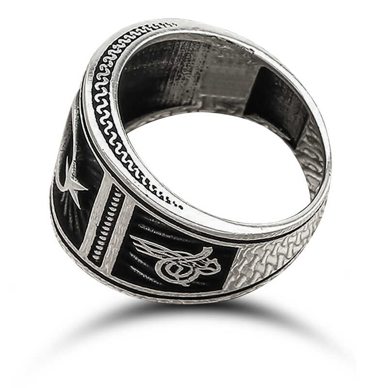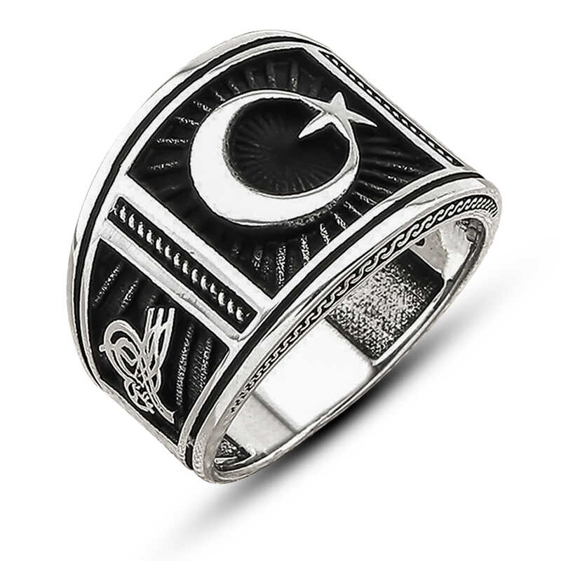Silver Crescent Star Men's Ring Crescent and star or crescent-star; ancient symbol consisting of a crescent and a star at the open end of the crescent. Flags featuring this symbol are mostly found around the Mediterranean, in the Middle East, and in Central Asia. Today, it is known as a symbol mostly used in the flags of Islamic countries. The Crescent and Star symbol appears on many flags, including the Turkish flag. Although the Moon or Crescent is identified with Islam, it was also used in pre-Islamic times. The Crescent, Star, and Sun motifs provide information about the universe design of the Asian Turkic-Mongol peoples. However, the first documents depicting the Moon and Star together appeared in the Sumerian cities of Mesopotamia, in what is now Southern Iraq. The first use of the Crescent and Star motif, which clearly consists of a crescent, was made by the Sumerians. The Sumerians established the first state in history in Southern Iraq in 3000 BC and took a major step in the construction of today's civilization. The Sumerian language was very close to Turkish. Their beliefs were also largely similar to those of the Turks. The Sumerian Moon God "Nana-Suen" and the Sun God "Utu" or Goddess Inana's symbols were shown together, creating the first Crescent-Star pairing. This motif has survived to this day, sometimes carved in stone reliefs, sometimes on seals, and sometimes on clay tablets. You can choose this elegant ring as a birthday gift or Valentine's Day gift on special occasions. Silver crescent star men's ring is made of 925 sterling silver. Silver is oxidized. Oxidized silver rings have an aged appearance. Due to silver and precious stones, there may be a ±10% deviation from the average product weight. Width: 2.50 cm Length: 2.50 cm Average Weight: 9.50 gr.