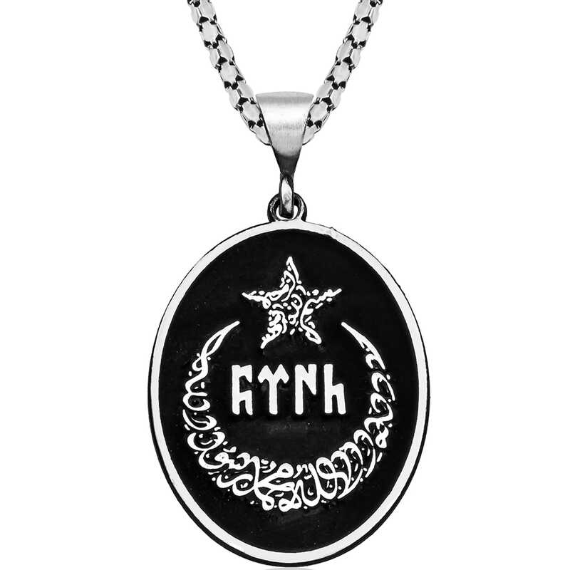 Silver Crescent Star Necklace with Gokturk Turkish Writing InsideThe Gokturks, or Gokturk Khaganate, is the first state established with the name "Turk" between 552 and 724. Turkish words were engraved on stones for the first time during this period. The word "Turk" was designed with the Gokturk alphabet in which it was used for the first time with the Crescent Star necklace. The necklace is made of 925 sterling silver. Oxide coating is applied on the silver. The oxide coating gives the silver an authentic look. As with other necklaces, the silver crescent star necklace with Gokturk Turkish writing inside is also handmade. Due to silver and precious stones, there may be ± 10% deviation from the average product weight. Width: 2.20 cm Length: 4.00 cm Avg. Weight: 10 gr. Average Chain Length: 55.00 cm.