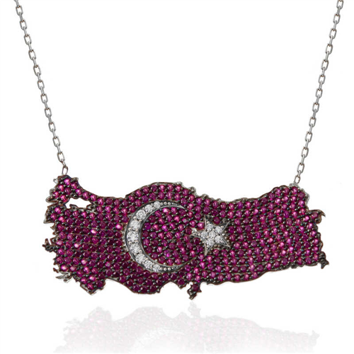 Silver Crescent Star Turkey Map Women's Necklace We know that the Turkish flag takes its inspiration from the crescent and star reflected in a lake of blood. We offer you an unmissable opportunity to carry the sacred meaning of the flag around your neck and share it with your loved ones. You can gift this stylish necklace to your loved ones on Mother's Day, Valentine's Day, birthdays or special days. This stylish necklace is made of 925 sterling silver. Rhodium plated silver. All silver women's necklaces with rhodium plated preserve their shine for a long time. The necklace has a 45 cm long silver chain. Like all silver women's necklace models, the silver crescent star Türkiye map women's necklace is also handmade. Due to silver and precious stones, there may be a ± 10% deviation in the average product weight. Width: 4.30 cm Length: 1.90 cm Average Weight: 6.10 gr.