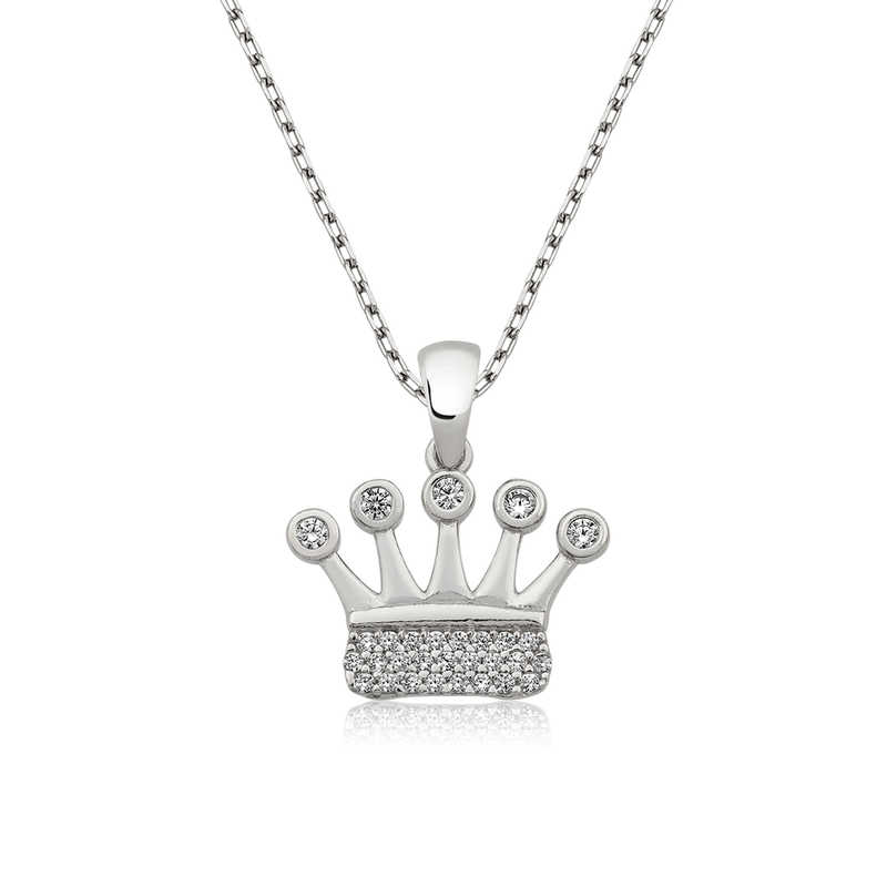 Silver Crown Women's Necklace How about telling your loved ones that they are the crown of your head? Inspired by the elegance of the queen's crown, you can choose this stylish necklace in everyday life, on special occasions and even at night. You can love wearing this necklace, which reminds me of stars with its sparkling stones. A silver necklace that appeals to all women who want to create a stylish look is waiting for you. The silver crown women's necklace is a perfect option for a birthday gift, Valentine's Day gift or as a gift for mothers on special occasions. The silver crown women's necklace is made of 925 sterling silver. Rhodium plated silver. Rhodium plated women's necklaces preserve their shine for a long time and delay oxidation. The stones on the necklace are zircon. Like all women's necklaces, the silver queen's crown women's necklace is also handmade. Due to silver and precious stones, there may be a ± 10% deviation in the average product weight. Width: 1.50 cm Length: 1.20 cm Average Weight: 2.80 gr.