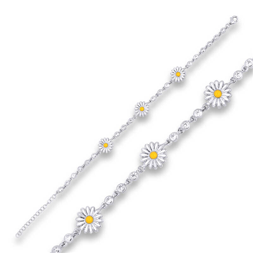 Silver Daisy Women's BraceletThe daisy flower expresses the meaning of pure love. One of its greatest features is that there is one on each stem. Inspired by nature, this sparkling women's bracelet is a wonderful design that you can enjoy using and gifting to your loved ones. Silver Daisy women's bracelet is made of 925 sterling silver. This silver bracelet is rhodium plated. Rhodium plated products preserve their shine for a long time and delay oxidation. Like all silver products, the silver daisy women's bracelet model is also handmade. Due to silver and precious stones, there may be ± 10% deviation in the average product weight.Daisy Width: 1.00 cm Daisy Length: 1.00 cm Bracelet Length: 20.50 cm Average Weight: 5.95 gr.