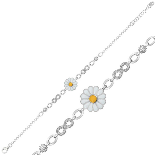 Silver Daisy Women's BraceletThe daisy flower expresses the meaning of pure love. One of its greatest features is that there is one on each stem. Inspired by nature, this sparkling women's bracelet is a wonderful design that you can enjoy using and gifting to your loved ones. Silver Daisy women's bracelet is made of 925 sterling silver. This silver bracelet is rhodium plated. Rhodium plated products preserve their shine for a long time and delay oxidation. Like all silver products, the silver daisy women's bracelet model is also handmade. Due to silver and precious stones, there may be ± 10% deviation in the average product weight.Daisy Width: 1.40 cm Daisy Length: 1.40 cm Bracelet Length: 20.50 cm Average Weight: 4.95 gr.