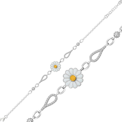 Silver Daisy Women's BraceletThe daisy flower expresses the meaning of pure love. One of its greatest features is that there is one on each stem. Inspired by nature, this sparkling women's bracelet is a wonderful design that you can enjoy using and gifting to your loved ones. Silver Daisy women's bracelet is made of 925 sterling silver. This silver bracelet is rhodium plated. Rhodium plated products preserve their shine for a long time and delay oxidation. Like all silver products, the silver daisy women's bracelet model is also handmade. Due to silver and precious stones, there may be ± 10% deviation in the average product weight.Daisy Width: 1.40 cm Daisy Length: 1.40 cm Bracelet Length: 20.50 cm Average Weight: 5.20 gr.