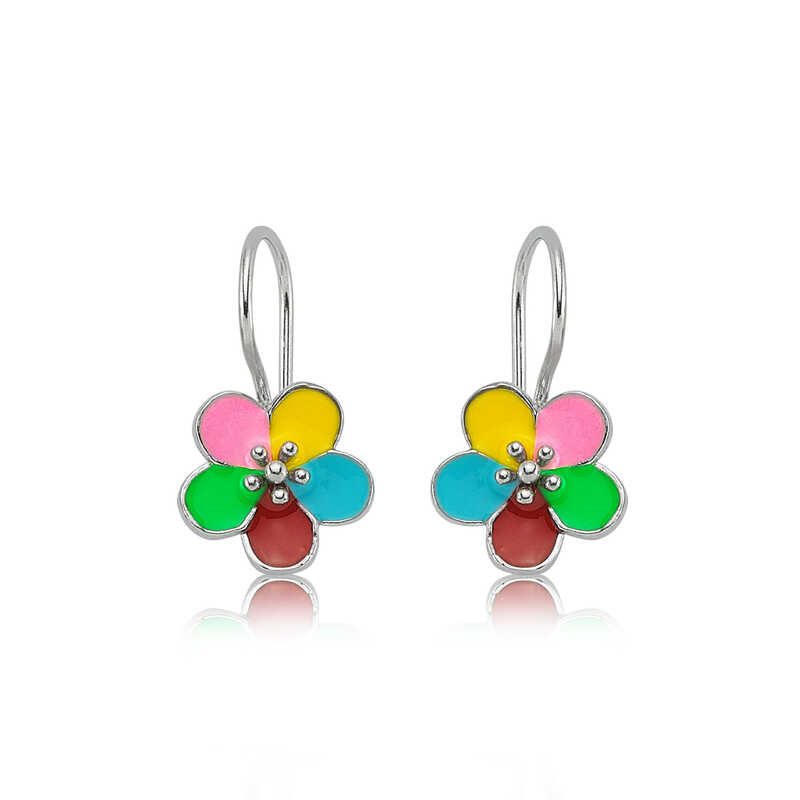 Silver Dangle Flower Children's Earrings We offer ornate and stylish earring models for princesses who have become interested in jewelry at a young age. With our silver children's models, we have many gift ideas and options on our site for newborns, birthdays and special occasions, so you can find whatever you are looking for in jewelry for children. Children's jewelry usually attracts the attention of mothers and close relatives for some reason. You can find and easily purchase products for little princes and princesses in many categories, such as silver children's and baby earrings, children's sets, baby pins, and girls' and boys' tags. This stylish earring model is made of 925 sterling silver. The silver is rhodium plated. Rhodium plated silver children's earrings preserve their shine for a long time. All of our products are hand-made. Due to silver and precious stones, there may be a ± 10% deviation in the average product weight. Width: 0.80 cm Length: 1.60 cm Weight: 1.10 gr.