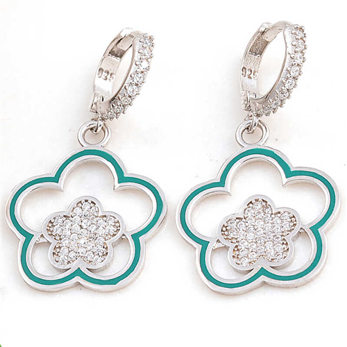 Silver Dangling Flower Patterned Women's EarringsEarrings, which are among the top choices of women on special occasions, are the savior of many women. Floral patterned earrings that you can combine with any outfit, from sporty to classic, are here at a very affordable price. You can complete your elegance with this model supported by small white zircon stones embroidered on an elegant flower motif. This earring model is made of 925 sterling silver. Rhodium plated silver. Rhodium plated silver earring models preserve their shine for a long time and oxidation is delayed. As with all silver earrings, the silver dangling flower patterned women's earring model is produced entirely by hand. There may be ± 10% deviation in the average product weight due to silver and precious stones.Width: 2.00 cm. Length: 2.30 cm. Average Weight: 5 gr.