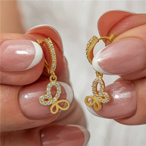 Silver Dangling Gold Butterfly Women's EarringsFlowers, which are among the gifts to be given on special occasions, this time find meaning with silver earrings. Silver women's earrings crafted with the highest quality, brightest, and most sparkling stones, are for those who want to express their love once again. The earring model that expresses the clarity and purity of the mind; It is made of 925 sterling silver. Gold plated on silver. Gold plated silver earrings preserve their shine for a long time and oxidation is delayed. Like all women's silver earrings, the silver butterfly earring model is produced by hand. The stones on it are zircon. Due to silver and precious stones, there may be a ± 10% deviation in the average product weight.Earring Width: 1 cmEarring Length: 2.10 cmAverage Weight: 2 gr.