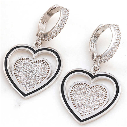 Silver Dangling Heart Women's EarringsThe heart symbol has always been the symbol of unconditional love and passion. In religious teachings, the power of the heart is limitless. Because the heart is the house of the Creator and our gateway to reality that opens to the universe. This stylish silver heart earring is a perfect option for a birthday gift, Valentine's Day gift or a gift for mothers on special occasions. The silver heart women's earrings are made of 925 sterling silver. These earrings are rhodium plated. Rhodium plated silver women's earrings preserve their shine for a long time. The stones on them are zircon. Like all our silver women's earring models, the silver heart women's earring model is handmade. Due to silver and precious stones, there may be ± 10% deviation in the average product weight. Earring Width: 1.80 cmEarring Length: 2.00 cmAverage Weight: 5 gr.