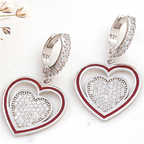 Silver Dangling Heart Women's EarringsThe heart symbol has always been the symbol of unconditional love and passion. In religious teachings, the power of the heart is limitless. Because the heart is the house of the Creator and our gateway to reality that opens to the universe. This stylish silver heart earring is a perfect option for a birthday gift, Valentine's Day gift or a gift for mothers on special occasions. The silver heart women's earrings are made of 925 sterling silver. These earrings are rhodium plated. Rhodium plated silver women's earrings preserve their shine for a long time. The stones on them are zircon. Like all our silver women's earring models, the silver heart women's earring model is handmade. Due to silver and precious stones, there may be ± 10% deviation in the average product weight. Earring Width: 1.80 cmEarring Length: 2.00 cmAverage Weight: 5 gr.