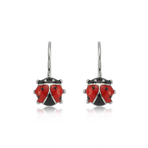 Silver Dangling Ladybug Children's Earring Ladybug is a symbol believed to bring good luck in many cultures. It is elegant in appearance. It is one of the most popular motifs preferred by women. It reminds its lovers of the mystery of nature and the richness of human imagination. You can gift this meaningful silver ladybug earring to your daughters and make them happy. This children's earring model is made of 925 sterling silver. Rhodium plated silver. Rhodium plated children's earring models preserve their shine for a long time and oxidation is delayed. Silver ladybug children's earring, like all other children's earring models, is produced entirely by hand. Due to silver and precious stones, there may be a ± 10% deviation in the average product weight. Earring Width: 0.70 cm Earring Length: 1.50 cm Average Weight: 1.30 gr