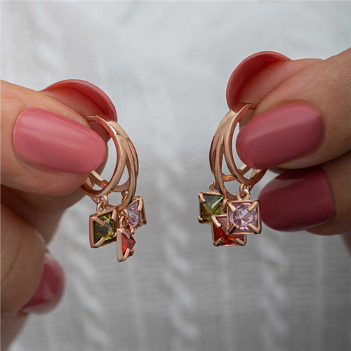 Silver Dangling Mixed Stone Hoop Earrings for WomenMixed stone hoop earrings, which you can use in all areas of life, are waiting for you to add sparkle and elegance to your outfits. Different trendy designs are released every year. This year's most popular models stand out as multi-stone products. You can add these stylish earrings to your jewelry box or consider them as a gift for a loved one. The stylish mixed stone hoop earrings are made of 925 sterling silver. Rose plated silver. Rose plated silver earrings preserve their shine for a long time and oxidation is delayed. The stones on them are zircon. Like all women's silver products, silver row stone hoop earrings are produced by hand. Due to silver and precious stones, there may be a ± 10% deviation in the average product weight.Width: 1.40 cm Length: 2.60 cm Average Weight: 5 gr.