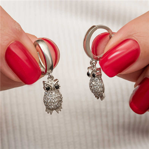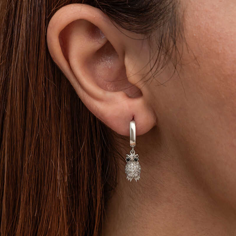Silver Dangling Owl Women's Earrings Silver owl women's earrings are a versatile accessory that combines elegance and grace. The owl represents knowledge and intuition in many cultures, so this earring can be a special piece that adds meaning to the person who wears it. Silver women's earrings are a perfect option for a birthday gift, Valentine's Day gift or a gift for mothers on special occasions. Made of 925 sterling silver. Rhodium plated silver. Rhodium-plated silver earrings preserve their shine for a long time and oxidation is delayed. Like all women's silver earrings, the silver owl women's earrings are handmade. The stones on them are zircon. Due to silver and precious stones, there may be a ± 10% deviation in the average product weight. Earring Width: 0.60 cm Earring Length: 2.50 cm Average Weight: 3.00 gr.