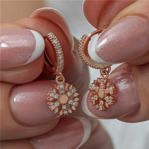 Silver Dangling Rose Snowflake Women's EarringsThe sparkle and clarity of women are specially designed to resemble snowflakes. The fact that each snowflake is unique and has a different value, just like women, is another feature that makes them special. Their nobility has managed to attract attention in every period. In addition, they symbolize that people, just like snowflakes, can live happily without hurting each other. This stylish earring is made of 925 sterling silver. Rose plated silver. Rose plated silver earrings preserve their shine for a long time and oxidation is delayed. The stones on them are zircon. Like all silver earrings, the silver Dangling Snowflake Women's Earrings are also handmade. Due to silver and precious stones, there may be a ± 10% deviation in the average product weight.Earring Width: 0.80 cmEarring Length: 2 cmAverage Weight: 2.20 gr.