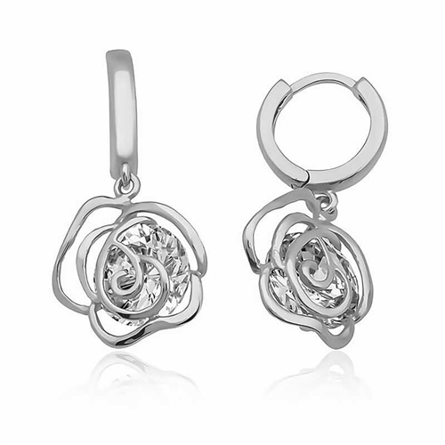 Silver Dangle Rose Women's EarringsElegant silver earrings with rose patterns have a model to suit every taste and concept. It will be a meaningful gift that you can make your loved ones happy. The love loop earring model is made of 925 sterling silver. There is rhodium plating on the silver. Rhodium-plated silver earring models preserve their shine for a long time. Like all silver earring models, the silver dangling rose earring model is handmade. Due to silver and precious stones, there may be ± 10% deviation from the average product weight.Width: 1.50 cmLength: 1.50 cmAverage Weight: 5.00 gr.