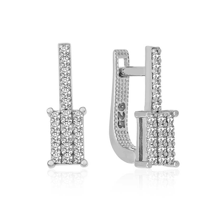 Silver Dangling Square Stone EarringsFlowers, which are among the gifts to be given on special occasions, this time found meaning with silver earrings. Silver women's earrings crafted with the highest quality, brightest, most sparkling stones, are for those who want to express their love once again. The earring model that expresses the clarity and purity of the mind; It is made of 925 sterling silver. Rhodium plated on silver. Rhodium plated silver earrings preserve their shine for a long time and oxidation is delayed. As with all women's silver earrings, the silver stone earring model is also produced by hand. The stones on it are zircon. There may be ± 10% deviation in the average product weight due to silver and precious stones. Earring Length: 1.70 cmEarring Width: 0.50 cmAvg. Weight: 3.45 gr.