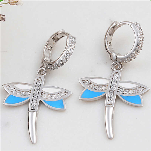 Silver Dangling Dragonfly Women's EarringsThe dragonfly is the symbol of devotion, loyalty, monogamy... The dragonfly does not give up on its love despite death... By nature, after the male and female dragonfly mate, the male dragonfly dies. After mating, the female feeds on the male's head. Even knowing that death will come in the end, the male dragonfly mates with a single female throughout its life and never gives up... This earring was designed with inspiration from this beauty that smells of sadness and loyalty... This wonderful earring is a great option for a birthday gift, a Valentine's Day gift or on special occasions. This stylish design is made of 925 sterling silver. The silver is rhodium plated. Rhodium plated silver women's earrings preserve their shine for a long time and oxidation is delayed. The white stones on the earrings are zircon. Like all women's silver earrings, the silver dragonfly dangling earrings are also handmade. Due to silver and precious stones, there may be a ± 10% deviation in the specified product weight.Earring Width: 2.00 cmEarring Length: 2.30 cmAverage Weight: 4.50 gr.