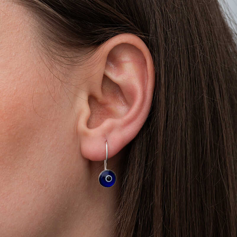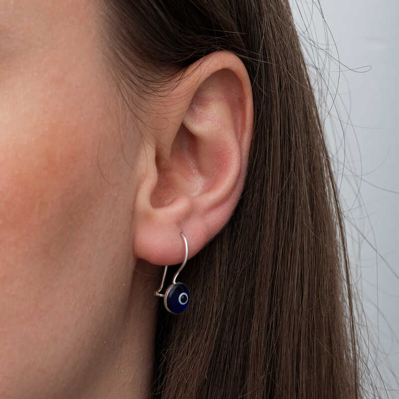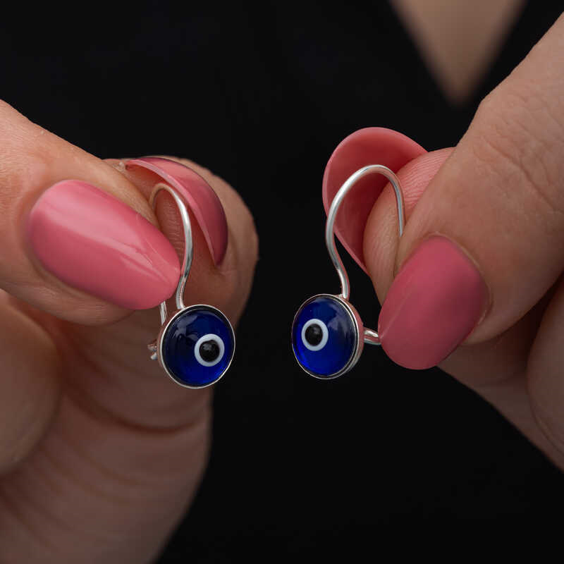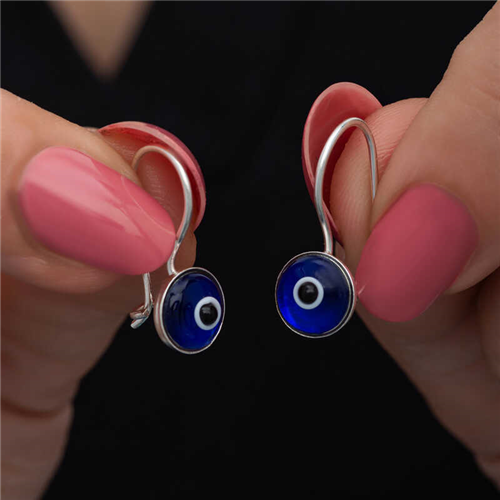 Silver Dangling Evil Eye Women's EarringsPeople have used the evil eye bead for many years to protect themselves from evil looks. The evil eye bead is a precaution against the negative effects of evil looks on people. For this reason, people wear the evil eye bead to protect their loved ones. This evil eye earring reflects elegance and style. You can choose this model, which has always been popular and does not compromise on its elegance, as a birthday gift, Valentine's Day gift or a gift for mothers on special occasions. The dangling evil eye earring model is made of 925 sterling silver. Rhodium plated on the silver. Rhodium plated silver women's earrings preserve their shine for a long time and oxidation is delayed. The stones on it are zircon. Like all silver women's earrings, this silver dangling evil eye earring for women is entirely handmade. Due to silver and precious stones, there may be a ± 10% deviation in the average product weight.Earring Width: 1.00 cmEarring Length: 2.20 cmAverage Weight: 1.90 gr.