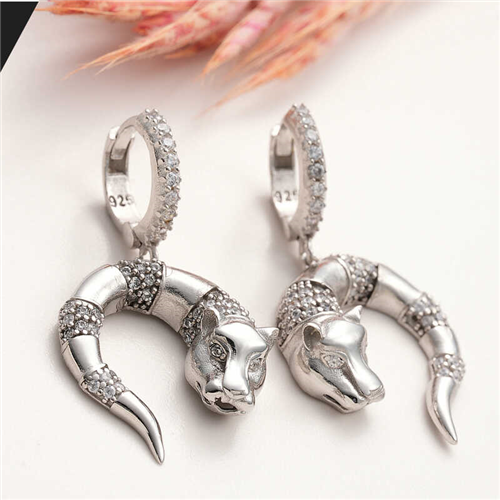 Silver Dangling Tiger Figured Women's EarringsThe tiger is the symbol of great power and authority. How about making your loved ones happy with an earring designed inspired by this power? These stylish earrings are made of 925 sterling silver. Rhodium plated on silver. Rhodium plated earrings preserve their shine for a long time. Like all women's earrings, the silver tiger figured women's earrings are handmade. You can gift these stylish earrings to yourself or your loved ones on your birthday or on special occasions. Due to silver and precious stones, there may be ± 10% deviation in product weight.Width: 1.90 cmLength: 3.20 cmAverage Weight: 5.80 gr.