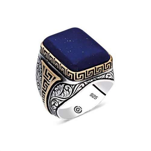 Silver Blue Lapis Stone Square Men's RingThis men's ring model, made of Blue Lapis stone on silver, is a stylish accessory that you can use at any time of the day. You can gift this ring to yourself or your loved ones on your birthday, Father's Day or special occasions. The Blue Lapis stone men's ring model is made of 925 sterling silver. Oxide coating is applied on the silver. Oxide coating preserves its shine for a long time. As with all men's rings, the silver Blue Lapis stone Square men's ring model is produced by hand. Due to silver and precious stones, there may be a ± 10% deviation from the average product weight.Average Weight: 17.00 gr.