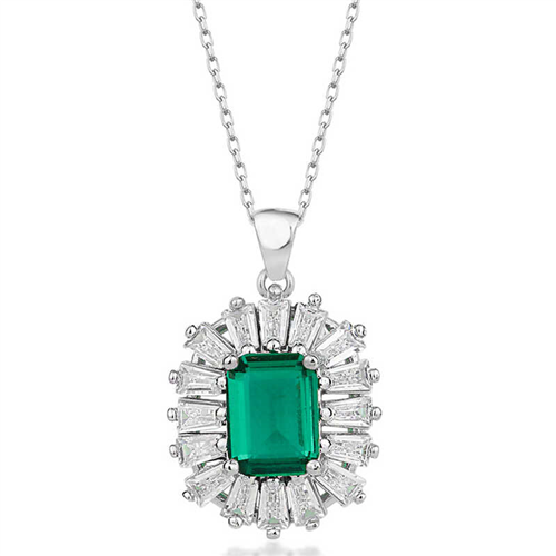 Silver Diamond Mounted Emerald Stone Women's Necklace Jewelry that has been the symbol of your image for centuries is presented to you in specially designed collections. Reflect your style with silver necklace models that are with you at every moment, from your daily life to your special occasions. Start revealing the creative originality that speaks to your soul with these different, eye-catching designs. It is now very easy to stand out with your interesting style in every environment you enter with the silver necklace types that will make your dream combinations come true. Emerald colored stone women's necklace is made of 925 sterling silver and rhodium plated. All of our silver necklace models are produced by hand. Due to silver and precious stones, there may be a ± 10% deviation in the average product weight. Width: 1.40 cm Length: 1.50 cm Chain Length: 45 cm Average Weight: 4.00 gr.