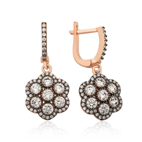 Silver Diamond Mount Flower EarringsFor all women who want to capture an elegant look, these timeless silver earrings are waiting for you. How about adding sparkle to your surroundings with the dazzling sparkle of rose-plated silver and zircon... Flower earrings, which you and your loved ones will enjoy wearing, will also be one of the most beautiful gifts to share your love. Made of 925 sterling silver. Rose gold plating is applied to the silver. Rose gold-plated products preserve their shine for a long time and oxidation is delayed. The stones on them are zircon. All of our products are handmade. Due to the silver and precious stones, there may be a +10% deviation in the weight of the product.Average Weight: 6.50 gr.