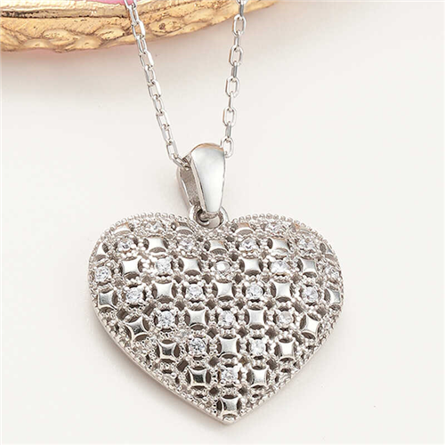 Silver Domed Heart Women's NecklaceThe heart symbol has always been the symbol of unconditional love and passion. In religious teachings, the power of the heart is limitless. Because the heart is the house of the Creator and our gateway to reality that opens to the universe. This stylish silver domed heart necklace is a perfect option for a birthday gift, Valentine's Day gift or a gift for mothers on special occasions. The silver domed heart women's necklace is made of 925 sterling silver. This necklace is rhodium plated. Rhodium plated silver women's necklace models preserve their shine for a long time. The stones on it are zircon. As with all our silver women's necklace models, the silver domed heart women's necklace model is handmade. Due to silver and precious stones, there may be ± 10% deviation in the average product weight. Width: 2.00 cmLength: 1.90 cmChain Length: 45 cm Avg. Weight: 4.80 gr.