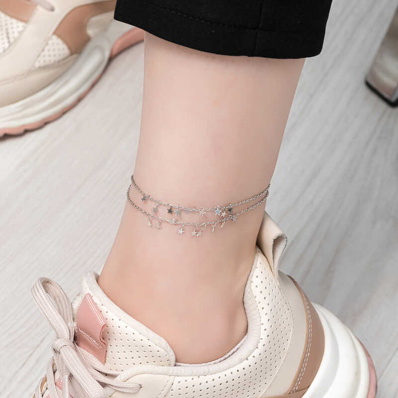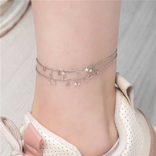 Silver Double-Chain Star AnkletWhile women are often thought of when jewelry is mentioned, it has influenced both men and women throughout history. Women wear jewelry to appear more elegant and attractive, while men wear it for style. Jewelry not only represents social status, personality, beliefs, and identity, but also serves various functions. In Anatolia, women working in vineyards, gardens, and fields could easily locate their young children by the sound they made from anklets. The sound they made was also used to deter poisonous animals like snakes and scorpions. Today, they are worn by women who want to look elegant and stylish. Don't deprive your wrists of this elegance, visit our anklet section, and choose your favorite model. The double-chain star anklet is made of 925 sterling silver. The silver is rhodium-plated. Rhodium-plated women's anklets preserve their shine for a long time, transform silver to rhodium, and delay oxidation. All of our products are handmade. Due to silver and precious stones, there may be a ± 10% deviation in product weight.Star Width: 0.40 cmStar Length: 0.50 cmAnklet Chain Length: 26 cmAverage Weight: 2.80 gr.