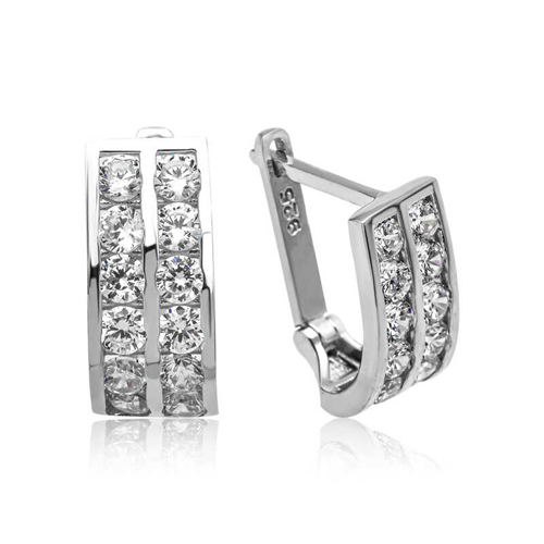 Silver Double Row White Stone J Women's EarringsYou will love using these earrings, which stand out with their stylish design in everyday life and on special occasions. The timeless double row white stone j women's silver earrings, which appeal to all women, are waiting for you. Silver double row white stone j women's earrings are a perfect option as a birthday gift, Valentine's Day gift or a gift for mothers on special occasions. Silver double row white stone j women's earrings are made of 925 sterling silver. Rhodium plated silver. Rhodium plated silver earring models preserve their shine for a long time and oxidation is delayed. Like all women's earrings, this earring model is produced by hand. Due to silver and precious stones, there may be a ± 10% deviation in the average product weight.Earring Thickness: 0.60 cmEarring Diameter: 1.20 cmAverage Weight: 2.30 gr.