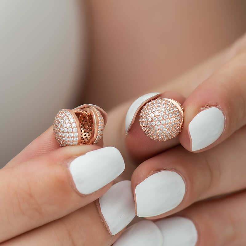 Silver Double Sided Stoned Women's EarringsYou will love using these earrings, which stand out with their stylish design in everyday life and on special occasions. Appealing to all women who want to achieve a free-spirited look, these timeless double-sided silver earrings with a round ball pattern are waiting for you. Silver double-sided stoned women's earrings are a perfect option for a birthday gift, a Valentine's Day gift or a gift for mothers on special occasions. Silver double-sided stoned women's earrings are made of 925 sterling silver. Rose plated silver. Rose plated silver earring models preserve their shine for a long time and oxidation is delayed. Like all women's earrings, this earring model is produced by hand. Due to silver and precious stones, there may be a ± 10% deviation in the average product weight.Width: 1.30 cmLength: 1.00 cmAverage Weight: 6.20 gr.