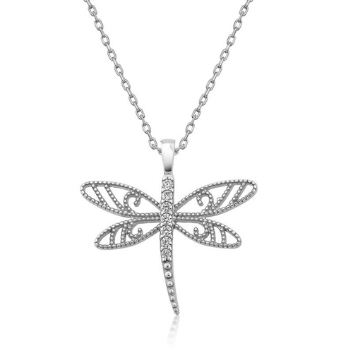 Silver Dragonfly Women's Necklace The Dragonfly, a symbol of loyalty; is the symbol of monogamy, fidelity, and love unto death. Because, by nature, after mating, the male dragonfly dies. In short, the male dragonfly mates with only one female dragonfly for its entire life. Moreover, knowing that death will eventually occur, it does not give up. You can gift a Dragonfly (Silver Necklace, Bracelet, Earrings) to your loved one to show your love and loyalty and make her happy. The silver dragonfly women's necklace, which is a model that you and your loved ones can easily use in daily life, is made of 925 sterling silver. Rhodium plated silver. Rhodium plated silver women's necklace models preserve their shine for a long time and oxidation is delayed. The stones on the necklace are zircon. The average silver chain length is 45 cm. Like all silver women's necklace models, this silver dragonfly women's necklace model is also handmade. Due to silver and precious stones, there may be a ± 10% deviation in the specified product weight. Width: 2.50 cm Length: 2.40 cm Average Weight: 2.30 gr.
