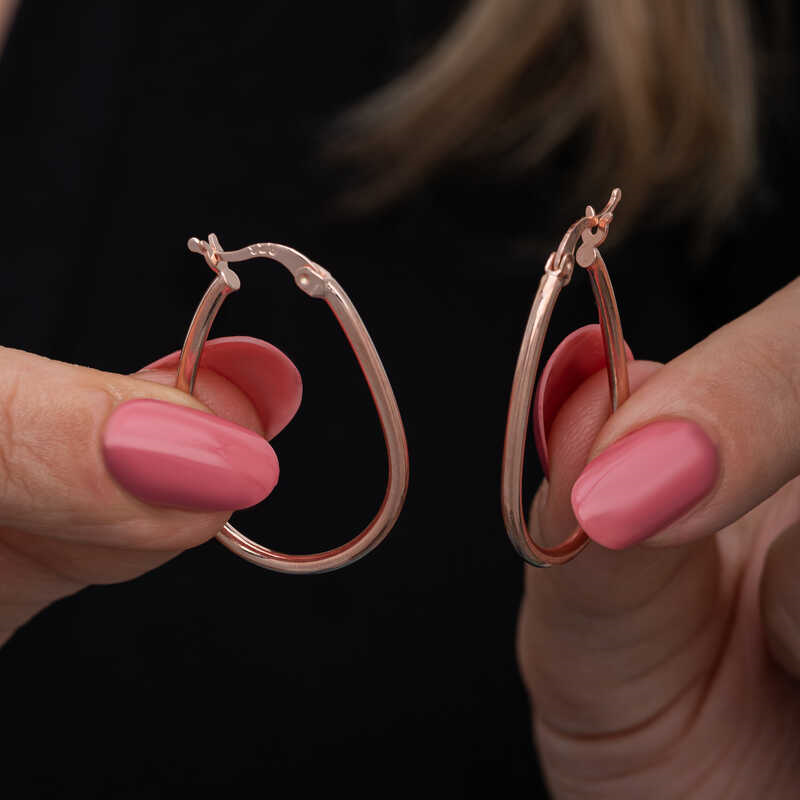 Silver Drop Hoop EarringsYou can wear these stylish and sporty hoop earrings very easily in everyday life. Silver drop hoop women's earrings are a perfect option for a birthday gift, Valentine's Day gift or as a gift for mothers on special occasions. Silver hoop women's earrings are made of 925 sterling silver. Rose plated silver. Rose plated silver hoop women's earrings preserve their shine for a long time and oxidation is delayed. Like all women's earrings, silver hoop women's earrings are handmade. Due to silver and precious stones, there may be ± 10% deviation from the average product weight.Earring Width: 2.50 cmEarring Length: 3.50 cmAverage Weight: 3.50 gr.