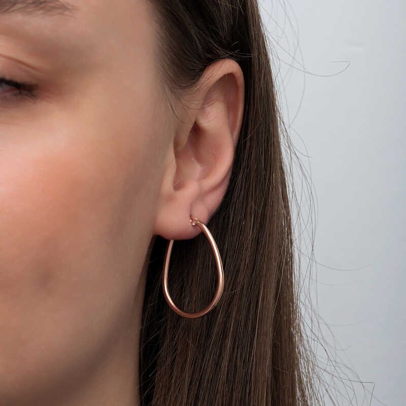 Silver Drop Hoop EarringsYou can wear these stylish and sporty hoop earrings very easily in everyday life. Silver drop hoop women's earrings are a perfect option for a birthday gift, Valentine's Day gift or as a gift for mothers on special occasions. Silver hoop women's earrings are made of 925 sterling silver. Rose plated silver. Rose plated silver hoop women's earrings preserve their shine for a long time and oxidation is delayed. Like all women's earrings, silver hoop women's earrings are handmade. Due to silver and precious stones, there may be ± 10% deviation from the average product weight.Earring Width: 2.50 cmEarring Length: 3.50 cmAverage Weight: 3.50 gr.