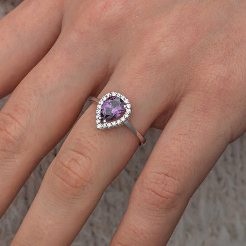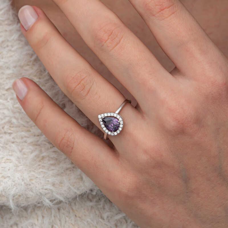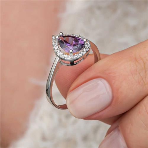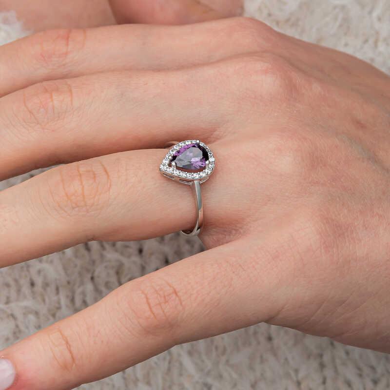 Silver Drop Purple Stone Female Ring