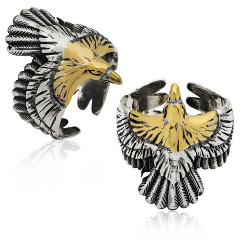 Silver Eagle Men's Adjustable RingThe eagle, the king of birds and descending to earth to fight, is known for being especially warlike and powerful; that's why it has become the symbol of many nations. Inspired by this deep meaning, the eagle men's ring can be a gift to yourself or your loved ones on your birthday, Father's Day or special days. This stylish men's ring is made of 925 sterling silver. Oxidized silver is coated. Oxidized rings preserve their shine for a long time. Like all men's rings, the adjustable silver eagle men's ring is also produced by hand. Due to silver and precious stones, there may be a ± 10% deviation in product weight.Average Weight: 8.50 gr.