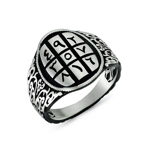 Silver Ebced Men's Ring Ebced, Abjad Calculation Ebced or Abûced is a sequence of letters arranged to make the letters of the Arabic alphabet easily memorable, with a numerical value system corresponding to each of this sequence, and the name of the first of the eight words that make up the sequence. Each letter has been given mathematical values from 1 to 1000. Abjad calculation was also used for calculating dates in Persian and old Turkish literature. For example, the word "Âherûn" was dropped from the Quran for the date of the Conquest of Istanbul. The sum of these is (alif+gayn+ra+vav+nun) = 1+600+200+6+50=857 and this date is the conquest year 857 (1453 AD). It is a ring that you can enjoy using and gifting to your loved ones. Oxidized coating is made on 925 sterling silver. Silver Ebced Men's Ring and all of our other products are handmade. Due to silver and precious stones, there may be ± 10% deviation from the average product weight stated. Width: 2.40 cm Length: 2.50 cm Avg. Weight: 8.20 gr.