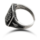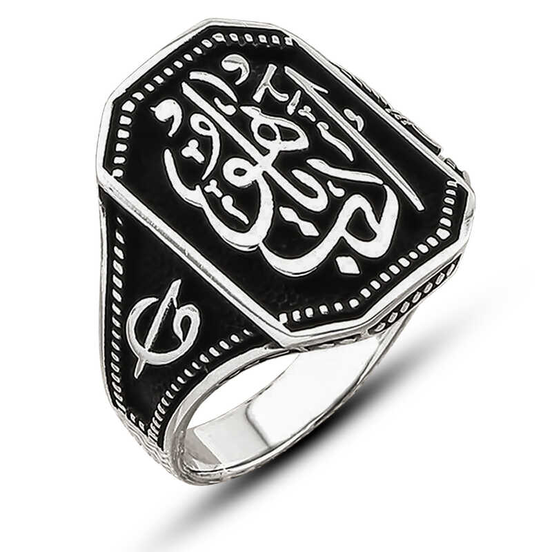 Silver Edeb Ya Hu Men's RingEdeb Ya Hu! It embraces courtesy, manners, good morals, and respect... Edeb tells us about the purpose of our Prophet’s existence in this world... In a hadith, he says, “I was only sent to complete good morals.” He also says in a hadith, “My Lord has given me manners, how beautifully He brought me up.” Edeb comes before knowledge. In fact, Yunus Emre emphasized the importance of manners with the lines, “I sought them in the circles of knowledge, I made them my request - Knowledge remained behind, only manners, only manners.” Edeb is literally like the covering of the soul. Inspired by this spiritual beauty, we designed the Edeb ya hu men’s ring; you can gift it to yourself or your loved ones on your birthday, Father’s Day or on special occasions. This perfect ring is made of 925 sterling silver. The silver is oxidized. Like all silver men's rings, the silver edeb ya hu men's ring is also entirely handmade. Due to the silver and precious stones, there may be a ± 10% deviation from the average product weight.Ring Width: 2.30 cmRing Length: 2.60 cmAverage Weight: 9 gr.