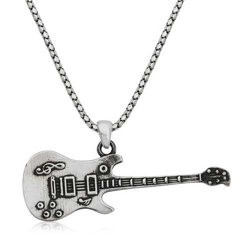 Silver Electric Guitar Men's Necklace Instrument-themed necklaces are among the most attractive models for musicians and music lovers. Generally preferred by musicians who take their music with them wherever they go, silver necklaces are a nice accessory that reflects a person's style in daily life. This silver guitar necklace model, which you and your loved ones will enjoy wearing, will be one of the best gifts. The guitar necklace model is made of 925 sterling silver. Oxidized silver is coated. Oxidized silver necklace models preserve their shine for a long time and delay tarnishing. The length of the silver necklace is 50-55 cm. Like all necklace models, the silver electric guitar necklace model is also produced by hand. Due to silver and precious stones, there may be a ± 10% deviation from the average product weight. Width: 5.00 cm. Length: 1.60 cm. Average Weight: 10.00 gr.