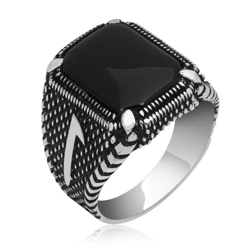 Silver Elif Onyx Stone Men's RingOnyx, which reached the earth's surface over millions of years, is a stone formed by the heating and cooling of rocks and some components over time. Onyx is known as the stone of luck and is a type of semi-precious stone. Due to its workability and aesthetically elegant, onyx has been used in the making of various ornaments and jewelry from ancient times to the present. Onyx is the sacred stone of the earth signs Taurus, Virgo and Capricorn. People with these signs can be protected from negative energy by choosing onyx stone accessories. You can gift this stylish ring to yourself or your loved ones on your birthday, Father's Day or other special occasions. This stylish ring is made of 925 sterling silver. The silver is oxidized. Rings with oxidized coating achieve an authentic look. Like all men's rings, the silver onyx stone men's ring is also handmade. Due to silver and precious stones, there may be a ± 10% deviation from the average product weight.Ring Width: 2.40 cmRing Length: 2.60 cmAverage Weight: 9.20 gr.