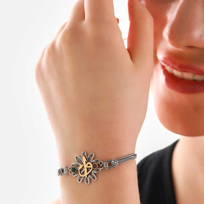 Silver Elif Vav Authentic Women's Necklace This stylishly designed elif vav model authentic bracelet is produced using 925 sterling silver and bronze metals. This patterned authentic elif vav women's bracelet model, manufactured using red and green zircon stones, has an oxidized coating. Oxidized silver authentic women's bracelet models preserve their first-day state for a long time. As with all silver authentic bracelet models, the silver authentic elif vav bracelet model is also produced by hand. Due to silver and precious stones, there may be a ± 10% deviation in the average product weight. These authentic bracelets, which will never go out of fashion and appeal to all women who want to capture an elegant look, are waiting for you. Elif vav - Width: 2.20 cm Elif vav - Length: 3.20 cm Chain Length: 20 cm Average Weight: 8.00 gr