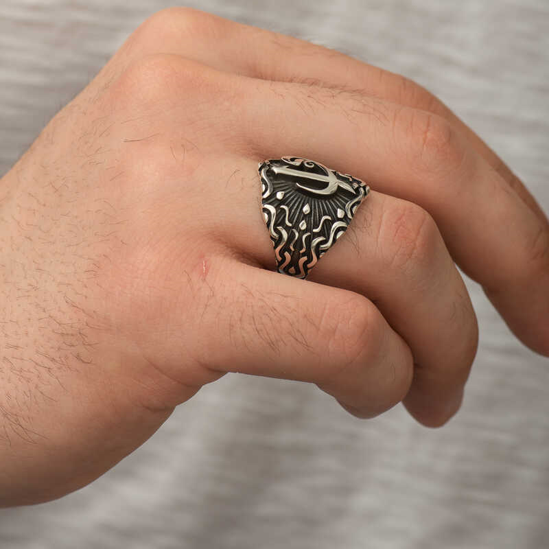 Silver Elif Vav Male Ring Each letter has a symbolic meaning, just like numbers... Since God’s name starts with hand, a letter can not be added from the left to the handful letter like other letters. God symbolizes one and one. The letter Vav means a tribute to the mother's stomach and a edepli ear. These two letters and meaning are used together. The first wound should be like Vav should be bended from the first wound, not to know how to use it. Our starter should be like vav. You can choose from the day of birth to yourself or your loved ones. This elegant ring is made of 925 adjustment silver. oxide coating on silver is made. Oxide coated rings keep brightness for a long time. Silver elif vav male ring as all male rings are also manufactured with hand labor. Due to silver and precious stones, product weight can be ± 10% deviation. Width : 2.20 cm Size : 2.50 cmOrt. Weight : 10.20 gr.