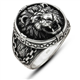 Silver Wolf Head Men’s Ring with Gokturk Turkish Writing