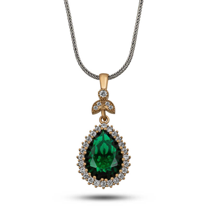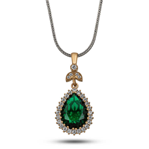 Silver Emerald Stone Hürrem Women's Necklace Attracting attention with its eye-catching design, this special Hürrem necklace offers elegance and style together. The necklace, which gains a bright and durable appearance with silver plating, contains dazzling emerald and zircon stones. This necklace, which reflects the nobility and beauty of Hürrem, includes fine workmanship and care in every detail. The name "Hürrem" was inspired by the famous Hürrem Sultan in the Ottoman Palace, and this name is often used as a symbol of beauty, nobility and power. It is made of 925 sterling silver. Oxide coating has been applied to the Emerald Stone Hürrem necklace. The oxide coating has provided an antique look to the Hürrem necklace. You can choose this stylish necklace as a birthday gift, Valentine's Day gift or a gift for mothers on special occasions. Like all women's silver necklaces, the Hürrem necklace is also hand Due to silver and precious stones, there may be ± 10% deviation in the specified product weight. Width: 1.80 cm Earring Length: 3.50 cm Chain Length: 55 cm Average Weight: 11.10 gr.