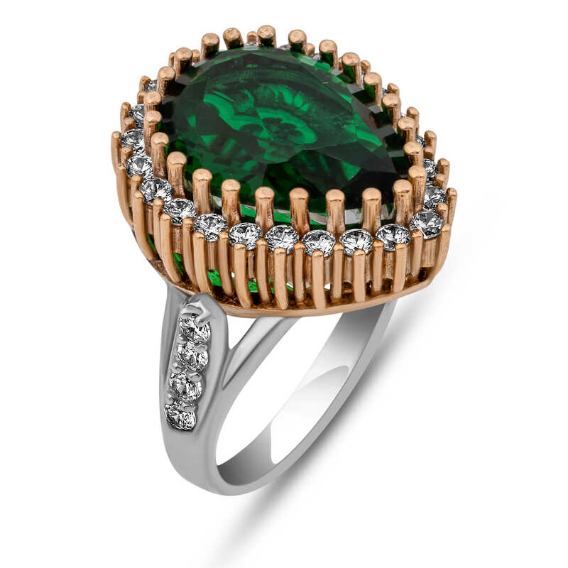 Silver Emerald Stone Hürrem Women's Ring With its elegance, grace and all its splendor, Hürrem Sultan and her unique jewelry that reflects her... Large silver rings with emerald stones bearing Ottoman motifs are indispensable for all women... Hürrem Sultan models, which never compromise on their elegance, are a perfect option for birthday gifts or special occasions as a gift for mothers. Hürrem Sultan women's ring is made of 925 sterling silver. Oxidized coating is applied to the Emerald Stone Hürrem Ring. The oxide coating provides an antique look to the Hürrem ring. You can choose this stylish ring as a birthday gift, Valentine's Day gift or a gift for mothers on special occasions. Like all women's silver sets, the Hürrem women's set is produced by hand. Due to silver and precious stones, there may be a ± 10% deviation in the specified product weight. Width: 1.80 cm Length: 2.00 cm Average Weight: 9.20 gr.