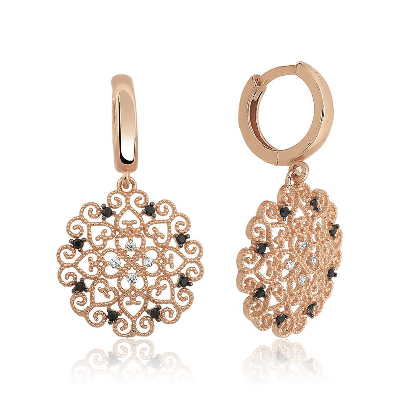 Silver Ethnic Patterned Women's EarringsEthnic patterned women's earrings, decorated with colored zircon stones, are designed for those who love elegance and shine. It is a product that you can enjoy wearing at any time of the day, that will attract everyone's attention and dazzle. Silver ethnic patterned women's earrings are made of 925 sterling silver. These earrings are plated with rose gold. Rose gold-plated products preserve their shine for a long time and turn the silver into copper color. The stones on it are zircon. Like all silver women's earring models, the silver ethnic patterned women's earring model is also produced by hand. Due to silver and precious stones, there may be a ± 10% deviation in the average product weight. All of our products are produced by hand.Width: 1.80 cm Length: 3.00 cm Average Weight: 3.92 gr.