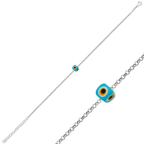 Silver Evil-Eye Anklet Although women are usually thought of when it comes to jewelry, it has influenced both men and women throughout history. Jewelry, worn by women to appear more elegant and attractive and by men for style, not only represents social status, personality, beliefs, and identity, but also has various functions. In Anatolia, women working in vineyards, gardens, and fields could easily find their young children's locations thanks to the sound made by anklets they wore on their feet. Anklets were also used to deter poisonous animals such as snakes and scorpions from approaching thanks to the sound they made. Today, they are used by women who want to look elegant and stylish. Don't deprive your anklets of this elegance and visit our anklet section to choose your favorite model. The product will be sent in a gift box... All of our products are handmade. Due to silver and precious stones, there may be ± 10% deviation in product weight. Width: 0.50 cm Length: 0.50 cm Average Weight: 1.81 Gr Length: 25 cm
