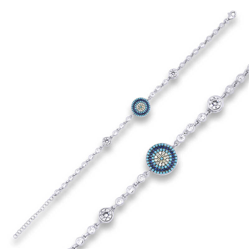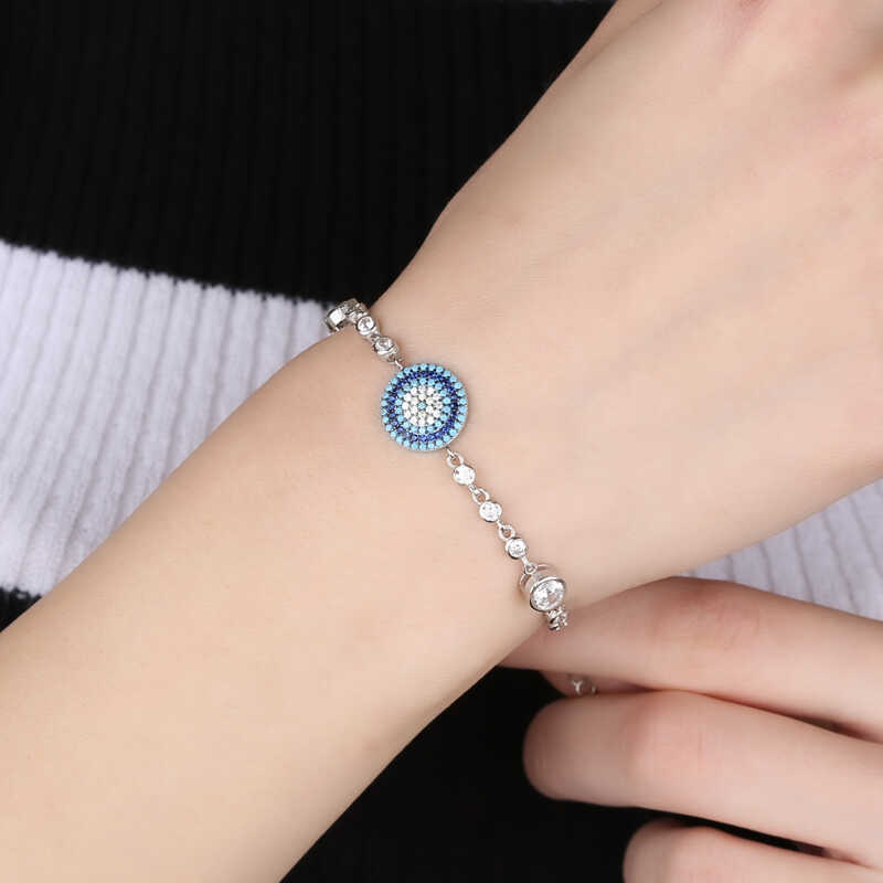 Silver Evil Eye Beaded BraceletPeople have used the evil eye bead for many years to protect themselves from evil looks. It is a precaution against the negative effects of evil looks on people, the evil eye bead… For this reason, people wear the evil eye bead to protect their loved ones. This evil eye bead bracelet reflects elegance and style. You can choose this model, which has always been popular and does not compromise on its elegance, as a birthday gift, Valentine's Day gift or a gift for mothers on special occasions. The silver evil eye women's bracelet is made of 925 sterling silver. Rhodium plated silver. Rhodium plated silver women's bracelets preserve their shine for a long time and oxidation is delayed. The stones on it are zircon. Like all silver women's bracelets, this silver evil eye bead women's bracelet model is entirely handmade. Due to silver and precious stones, there may be a ± 10% deviation in the average product weight.Width: 1.20 cmLength: 1.20 cmAverage Weight: 6.25 gr.Chain length: 21 cm